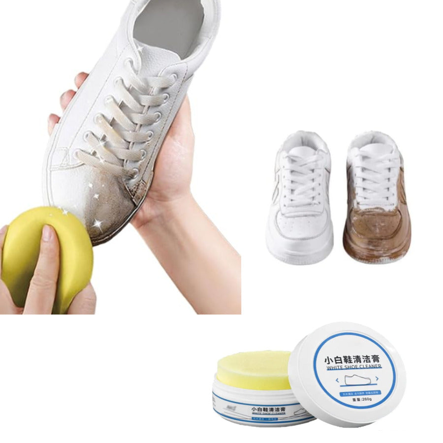 ¿Cansado de ver tus zapatos sucios? 😩 ¡Dales nueva vida al instante con la Pasta Mágica Limpiadora de Calzado! Su fórmula potente elimina manchas y suciedad sin necesidad de enjuague ni esfuerzo. 💧 Solo aplica con la esponja incluida y disfruta de resultados inmediatos: tus zapatillas quedarán impecables en segundos. 🧽